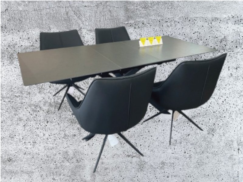 新商品入荷のお知らせ|伸長式セラミックダイニングセット スタイリッシュで機能性に優れた、伸長式セラミックダイニングセットが新入荷しました。テーブルは通常時140cm、来客時には180cmまで簡単に伸長でき、シーンに合わせて快適にお使いいただけます。天板にはキズや熱に強いセラミック素材を採用し、日常使いにも安心です。 肘付食堂椅子は回転式仕様となっており、立ち座りがスムーズで快適な座り心地を実現。デザイン性と実用性を兼ね備えた、ワンランク上のダイニング空間を演出します。 ぜひ店頭にて、実際の質感と使い心地をご体感ください。。 【商品詳細】