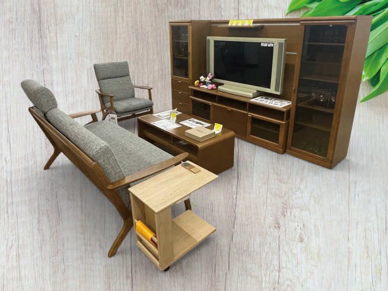 浜本工芸のリビングセットが新しく入荷しました。木の温もりを活かしたフレームデザインと、落ち着きのある張地が上質な空間を演出します。ソファの張地には、汚れに強くお手入れが簡単な「アクアクリーン」生地を採用。日常使いはもちろん、小さなお子様やペットのいるご家庭にも安心してお使いいただけます。テレビボードやリビングテーブルと組み合わせることで、統一感のある心地よいリビング空間をお楽しみください。 【商品詳細】 リクライニングチェア 幅670×奥行790~960×高さ950~900(座高さ420)mm 木部/ダークオーク 張地/アクアクリーン 【商品詳細】 【商品詳細】