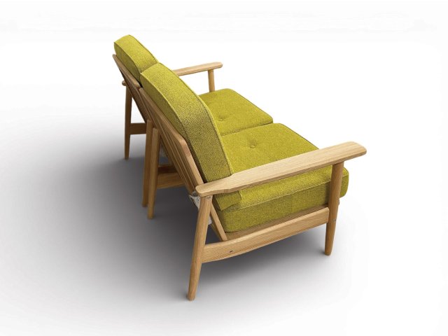 • 右肘椅子  幅665×奥行775×高さ810(座高さ400)mm 木部/ラスティックオーク・張地/B483 ノルデ・ミモザ